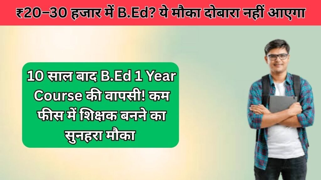 B.Ed 1 Year Course : 10 साल बाद बड़ी वापसी! अब फिर शुरू हुआ 1 वर्षीय B.Ed कोर्स, ₹20–30 हजार